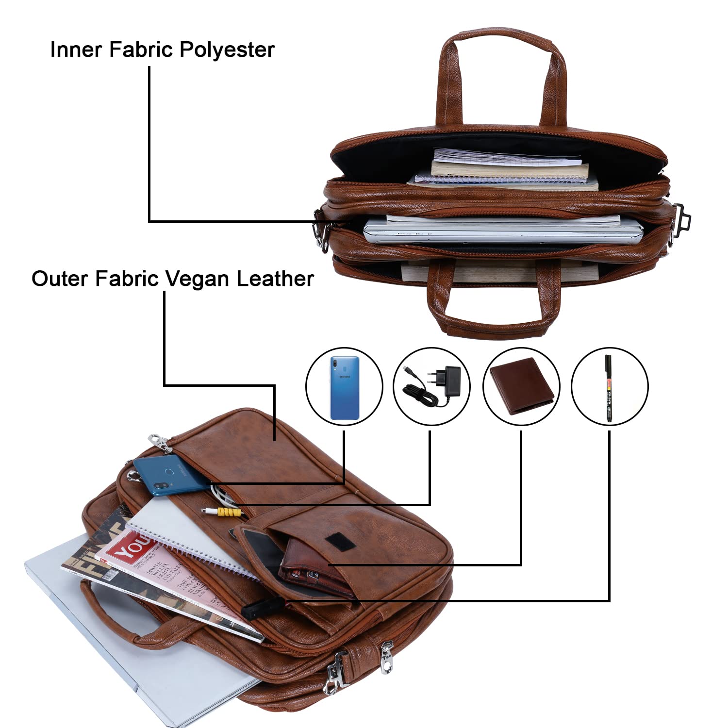 Teo 15.6 Inch Laptop Messenger Bag I Padded Laptop Compartment with Adjustable Strap I Extra Zip Compartments I Dimension: L-40 x W-20 H-30 cm Tan Colour