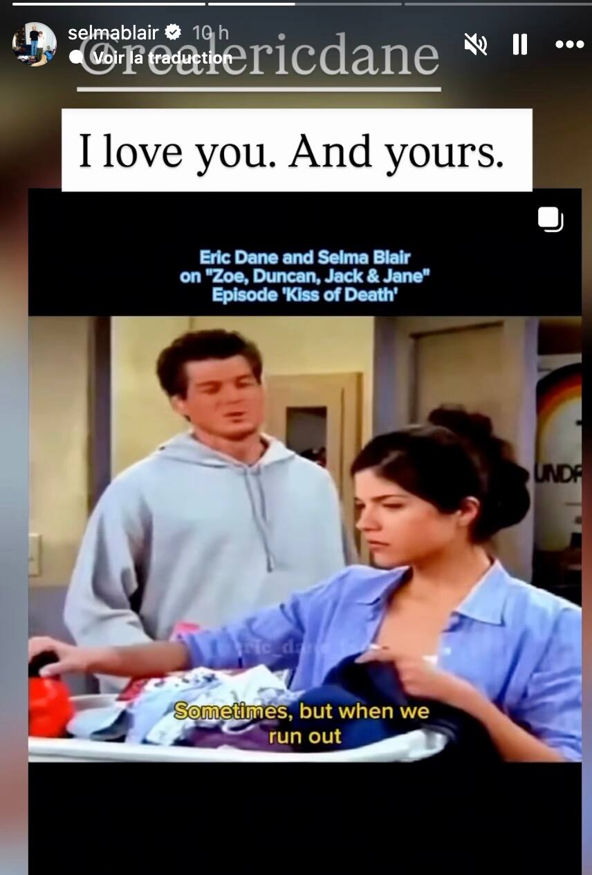 Selma Blair, qui a joué aux côtés de l’acteur dans un épisode de Zoe, Duncan, Jack & Jane et qui est atteinte de sclérose en plaques, a partagé une ancienne vidéo de la série sur Instagram et a écrit : « Je t’aime ».